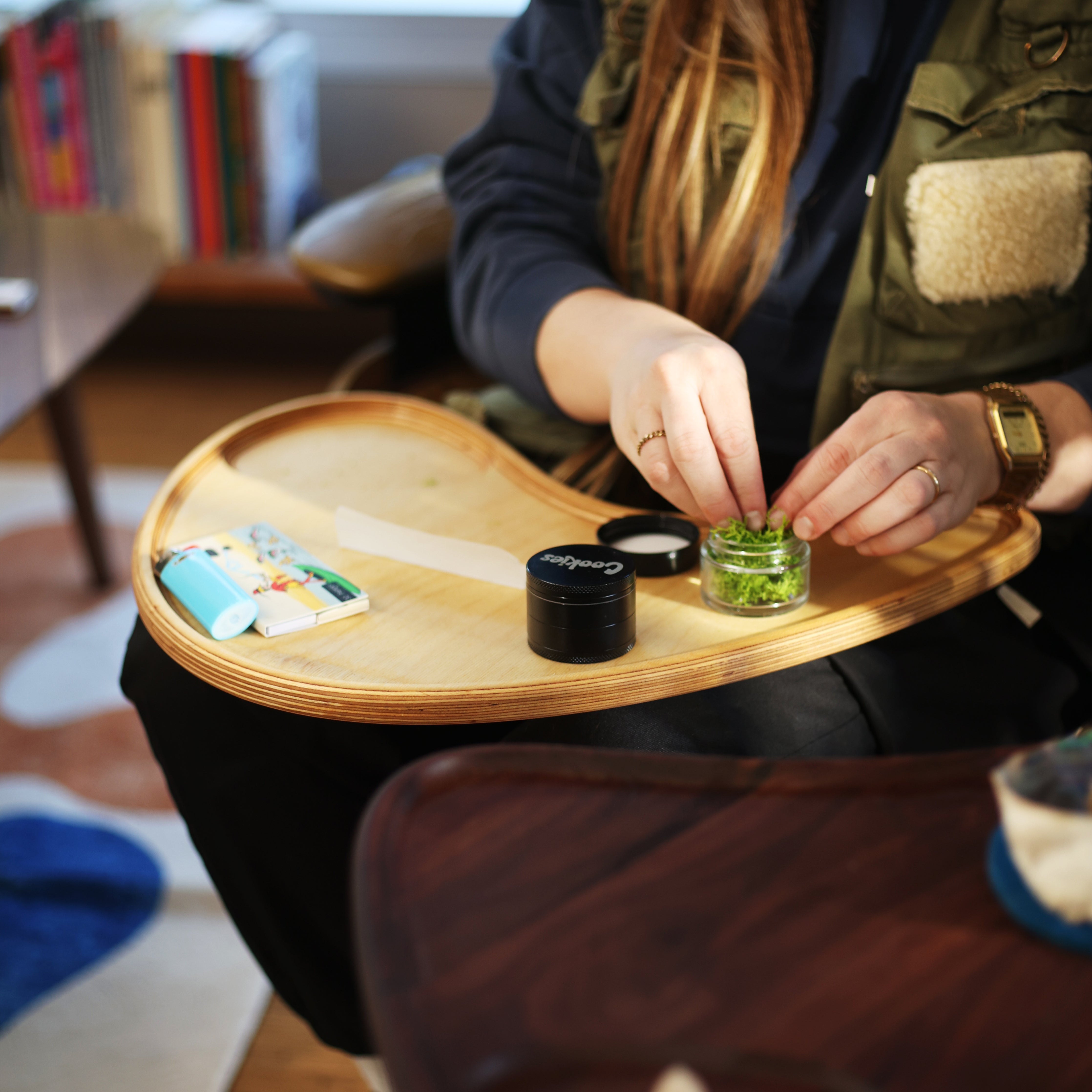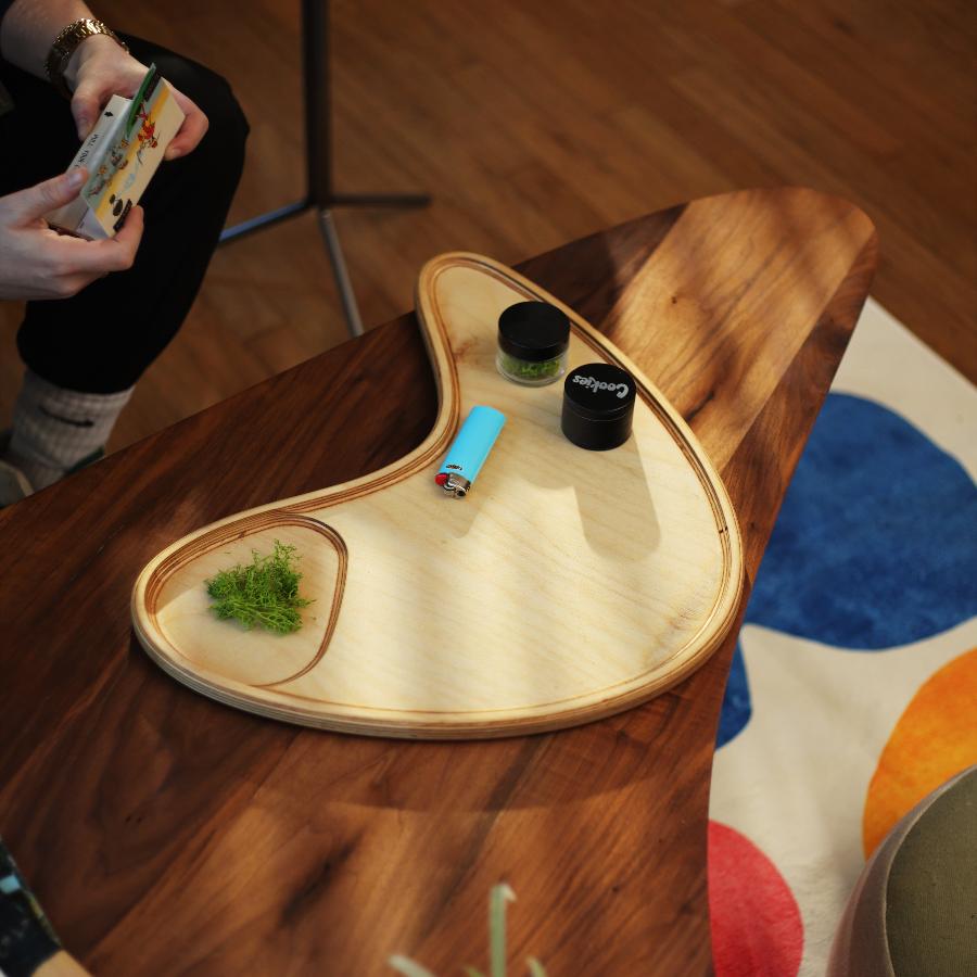 Groove into sleek, mid-century vibes with this handmade hardwood tray from Portland, OR. Featuring a unique carved design with large & small pockets, it’s perfect for rolling, organizing, or simply looking fabulous. Choose walnut or Baltic birch and upgrade it with steel tripod legs to transform it into a stylish end table. Form meets function in the grooviest way!